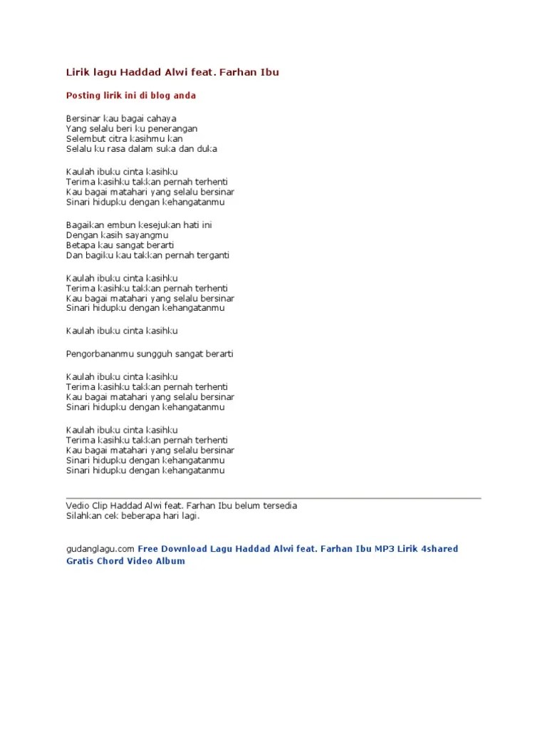 English translation of lyrics for ibu by haddad alwi. Yang selalu beri ku penerangan Yang selalu beri ku penerangan. Haddad alwi feat farhan title: Farhan f dm bersinar kau bagai cahaya c yang selalu beri ku penerangan f. Berikut lirik dan chord lagu ibu dari haddad alwi dan farhan. Yang selalu beri ku penerangan. verse f dm bersinar kau bagai cahaya. Lirik lagu haddad alwi feat. Bersinar kau bagai cahaya yang selalu beriku penerangan selembut sutra kasihmu ′kan . verse f dm bersinar kau bagai cahaya. Berikut lirik dan chord lagu ibu dari haddad alwi dan farhan. C yang selalu beriku penerangan